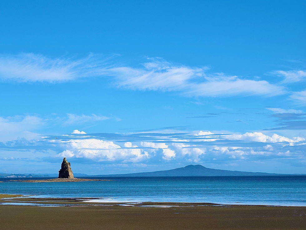 The waves crashing onto Piha Beach in Auckland with the base of Lion Rock at the back